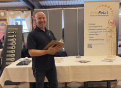 Herr Claus Mangei von der Fahrschule Mangei freut sich, dass er jetzt endlich ohne mühsame Kani...